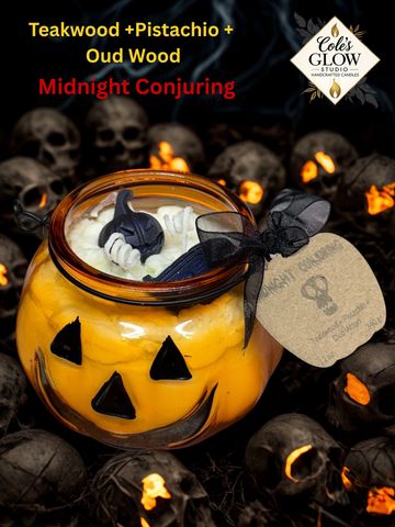 A playful and spooky collection of limited edition candles, crafted with luxurious coconut apricot wax and infused with exotic, mysterious fragrances. Each candle is poured into a uniquely designed vessel inspired by Halloween’s fun and eerie spirit. Available for a limited time, perfect for adding a festive touch to any autumn celebration.